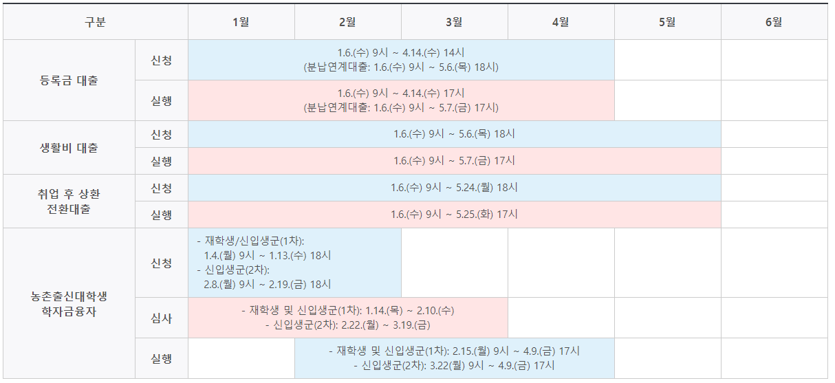 - 등록금대출 : '21.1.6(수) 9시 ~ 4.14(수) 14시